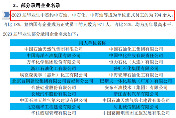 结业生就业质量也很是高,最新的就业数据显示2024届本科结业生有51%都能进入中国500强企业就业,次要就业单元也是三桶油等大型企业。